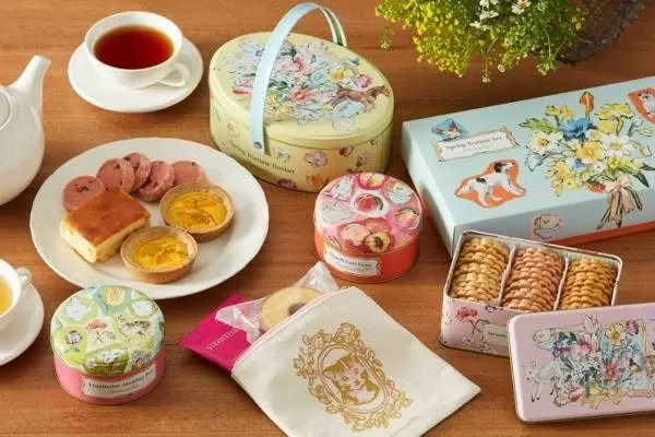 “花束のイラスト”描いたパッケージの春限定紅茶&焼き菓子