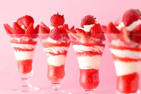 宮崎県産の甘くてコク深さが魅力的なベリーホップすずのパフェ。しっかりとした果肉で、程よい甘みと少ない酸味のいちごでさっぱりとした甘さのパフェを堪能できる。