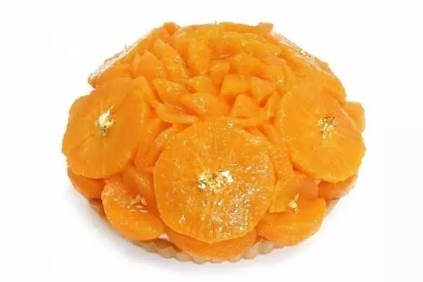 たとえば東京・銀座店では、愛媛県宇和島市産の柑橘を贅沢に使用した「愛媛県 宇和島市産 柑橘『愛媛果試第48号』とミルクチョコレートのケーキ」を用意。まるまる1個をスライスし、カットしたみかんをたっぷりと盛りつけ、金箔を添えた1品だ。