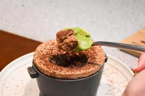 ミニマル初夏スイーツ“アツアツ&ひんやり”を楽しむ緑茶アイス付きチョコスフレ、祖師ヶ谷大蔵で