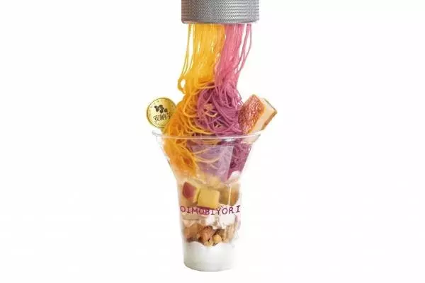 2023年の「夏のさつまいも博」の人気投票2部門で1位を獲得した、さつまいもスイーツ専門店「おいも日和」の「ふたいろ♪モンブラン」をアレンジしたモンブラン風パフェ。安納芋のクリームを贅沢に使用し、夏でも食べやすいさっぱりとした味わいに仕上げている。