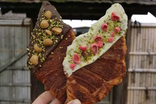 ベーカリーでは定番人気のパン「ムー」のほか、人気のクロワッサンサンド、ニューヨークロール、「パンとエスプレッソと」では初となるフラットクロワッサンなどを販売。クロワッサン系のパンを中心としたラインナップが特徴的となっている。