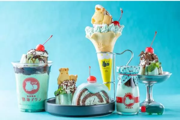 ベースとなるのは、マスカルポーネチーズを使った熱海プリンの定番「風呂まーじゅプリン」。優しいミントプリンに、相性抜群なチョコレートも忍ばせることで、どこか懐かしいレトロな味わいに仕上げている。また2024年は、“スースー感”をアップできる「スーパースースーソース」をトッピングで用意する。