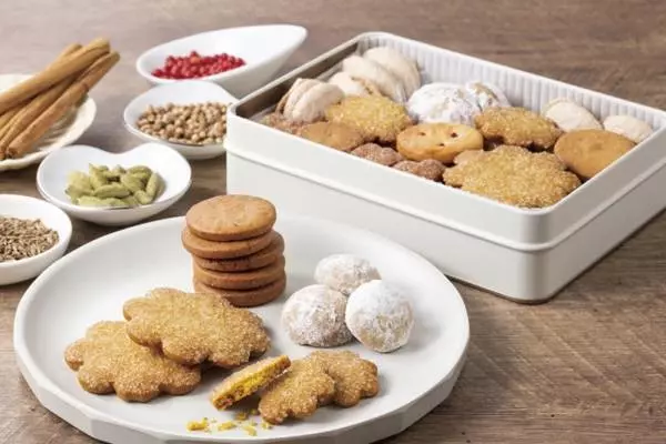 クッキー缶には、中村屋のインドカリーに使用されている厳選されたスパイスを用いた、6種類のスパイスクッキーをアソート。「中村屋純カリー粉」を生地に練り込んだ甘辛クッキーをはじめ、ガラムマサラやカルダモン、シナモンといった個性豊かなスパイスを用いて甘すぎず、辛すぎず、香り豊かなスパイスクッキーに仕上げている。