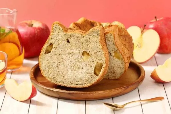 水を一切使用せず、ミルク100%を使用した“ねこの形”の高級食パン「ねこねこ食パン」に、アールグレイの風味を楽しめる限定フレーバー「ねこねこ食パン アールグレイアップルティー」が仲間入り。アールグレイの茶葉を練り込んだ生地に、りんごを入れて焼き上げた。