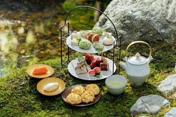 2024年4月に開業した自然派ラグジュアリーホテル「シックスセンシズ京都」。ホテル初のアフタヌーンティーとして登場する「暦アフタヌーンティー」は、“二十四節季”の考えに基づき約2週間ごとにメニューが変化する、和テイストのアフタヌーンティーだ。