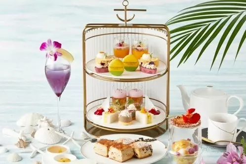 ウェスティンホテル横浜と、ハワイ・ワイキキ最古のビーチリゾートホテル「モアナサーフライダー、ウェスティンリゾート&スパ、ワイキキビーチリゾート」がコラボレーション。23階のロビーラウンジでは、ハワイの雰囲気を存分に感じられるアフタヌーンティーを楽しむことができる。