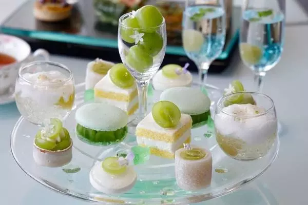 大阪マリオット都ホテル 「シャインマスカットアフタヌーンティー」ケーキやマカロンなどスイーツ勢ぞろい