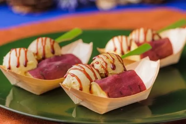 注目スイーツは、まるで“たこ焼き”のような見た目をした「いもくりなんきん欲張り小舟」。濃厚な甘さを持つ焼き芋に、マロンジェラートとかぼちゃジェラートをあわせ、“いも・くり・なんきん”を1度に楽しめる味わいに仕上げた。
