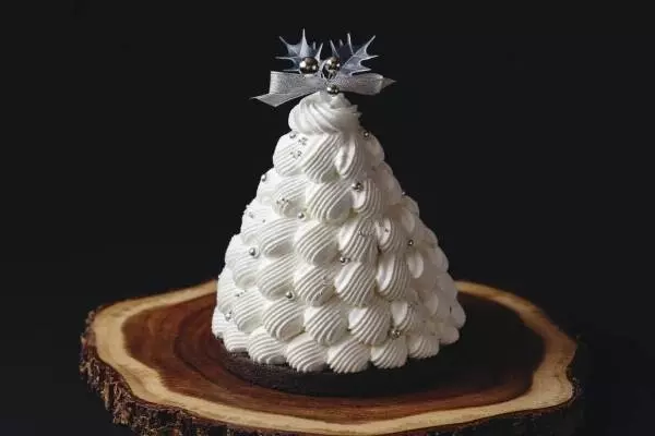 ロク キョウトは、“ホワイトクリスマス”をテーマにしたクリスマスケーキ2種を用意。注目は、毎年好評を博す“もみの木”型の苺のショートケーキ「サパン デュ ノエル」だ。雪化粧した純白のもみの木をイメージし、生クリームを美しくデコレーションした。2024年は、甘さと酸味のバランスが絶妙なブランド苺「古都華」をたっぷりと使用し、贅沢な1品に仕上げた。