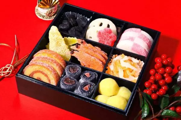 中でも注目は、新しい年のはじまりを彩るおせちをすべて菓子で再現した「グミおせち」。食感の異なるグミで仕上げた海老や数の子、ナッツチョコを使用した黒豆など、職人の手作業によって細かく作られた、本物そっくりの見た目が特徴だ。