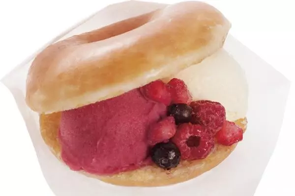 今回第一弾として発売されるフレーバーは、果汁と果肉を40%以上も配合した甘酸っぱいラズベリージェラートとリッチな風味のバニラアイスクリームをサンドし、仕上げにフローズンベリーをトッピングした「ラズベリー&バニラ」。食べる前に軽く温めれば、ドーナツの中でアイスがほどよくとろける絶妙な食感も楽しめるという。