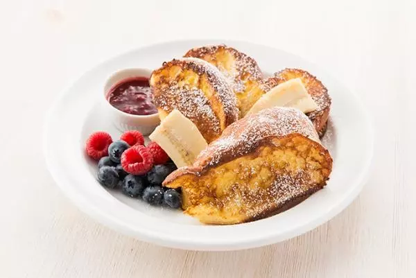 アメリカやカナダの家庭で子供から大人まで広く親しまれているピーナッツバター&ジェリー(ゼリー、ジャム)サンドウィッチ、略して“PBJ"。それをヒントにした 『PBJフレンチトースト』 は、 バターの風味がほのかに香るサラベス特製ハッラーブレッドに、 濃厚なピーナッツバターフィリングを挟んで焼き上げた一品。ふわふわした生地の中からとろけるピーナッツバターフィリングのクリーミーさと、 ラズベリーソースやベリーの酸味が相性ぴったりだ。