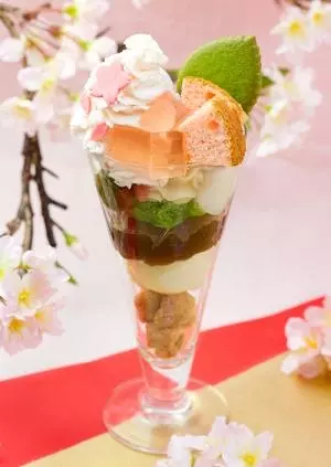 茶寮都路里の4月限定メニュー「花の粧い」と「春がすみ」 - 桜アイスや苺、黒糖わらびのパフェ
