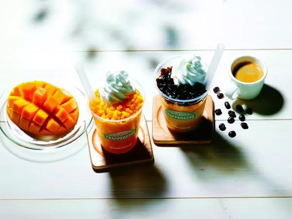 フレーバーは、コーヒー風味のフローズンドリンクにプルプルとした食感のコーヒーゼリーをトッピングした「コーヒーゼリー フラペレッソ」と、マンゴー風味のフローズンドリンクに、シャリシャリとした冷凍マンゴーをトッピングした「ダブルマンゴー フラペレッソ」の2種がラインナップ。