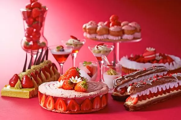 ストロベリーブラウニー、ストロベリーシャルロットケーキ、ストロベリーアラスカケーキ、ストロベリーシフォンケーキ、ストロベリーチーズケーキ、ストロベリープリン、ストロベリーエクレア、チョコレートフォンデュなど