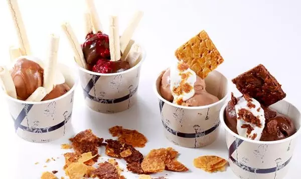 丸の内店で限定販売されるのは、2種類のテイクアウトメニュー。「ソルベ パリジャン」は、濃厚なビターチョコレート ソルベに、フランボワーズソースを合わせた。「グラス パリジェンヌ」はミルク チョコレートのアイスに、香り高い黒糖キャラメル ソースと生クリームを添えた一品だ。フランスではアイスにメレンゲを合わせるのは一般的で、どちらもサクサクなメレンゲと一緒にパリ スタイルで楽しめる。