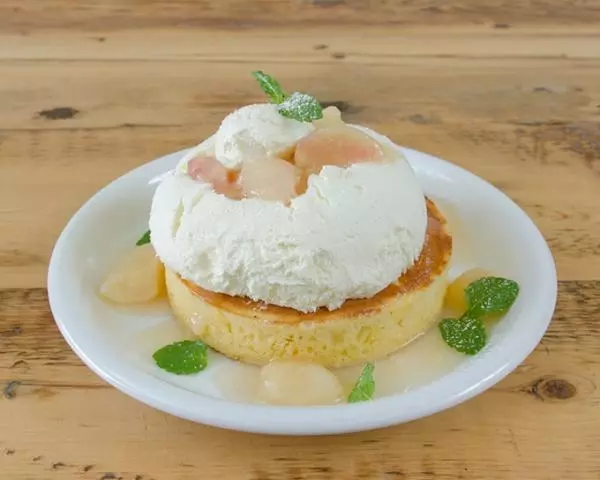 季節限定「桃のレアチーズパンケーキ」