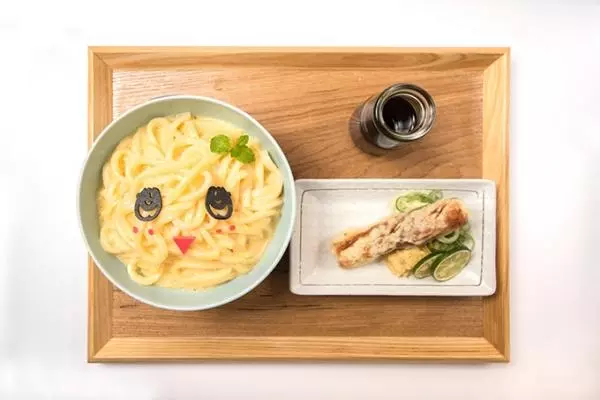 カフェでは、大阪出店にちなんだ新メニューが多数登場。ふなっしーの顔がかわいい汁なしうどん「ふなっしーのつるっ!と汁なしうどん」や、梨の濃縮エキス入りソースで味わう大阪名物のへレカツバーガー「大阪名物ヘレカツver! ふなっしーバーガー」、テイクアウト限定のたこ焼き風プチケーキ「ふなっしーに言われて買ってきた たこ焼き(風プチケーキ)」など、ここでしか食べれないメニューが豊富に揃う。