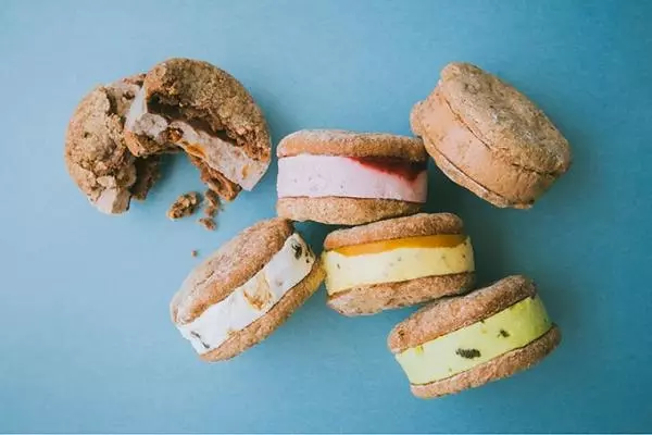 “フレッドドルチェ”は、ふわふわ食感のムースをチョコレート風味の生地でサンドした、凍らせて食べる新感覚スイーツ。ムースのフレーバーはカファレルの代名詞であるジャンドゥーヤチョコレートに始まり、深い味わいのピスタチオ、ほどよい酸味と甘さがマッチしたラズベリーなど。他にも、チョコレートチップ入りトロピカルフルーツ、ドライフルーツ入りハチミツムースなど全6種類を用意。