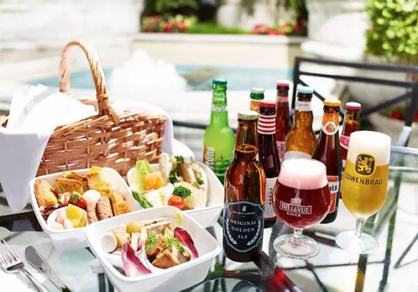 同ホテル初のイベント「ビアテラス ピクニック・エクスペリエンス」は、清らかな音を奏でる噴水、都会の風が心地良い開放感あふれるオープンテラスで、バスケットに入った料理とビールをピクニック気分で堪能できるもの。