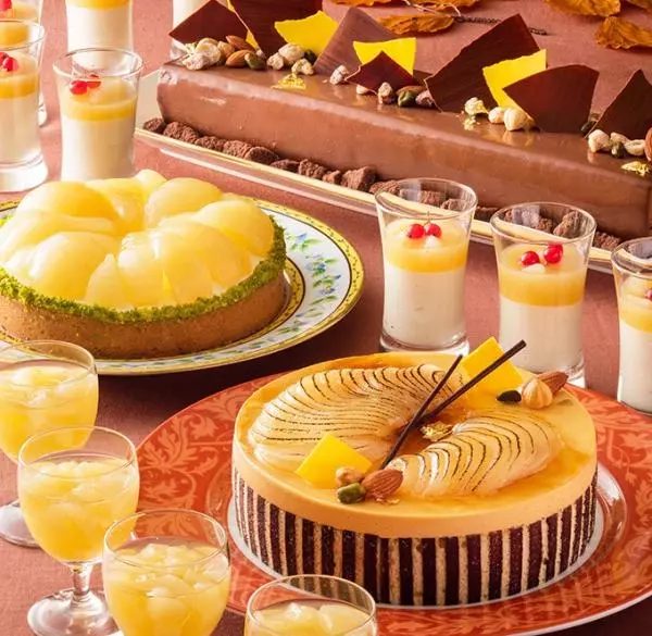 11月は「洋梨」をテーマに、ムースケーキやタルト、グラスデザートを用意。 洋梨ムースとカラメルムースのコラボレーションが絶妙な「カラメルポワール」、1ホールにつき約2玉分の洋梨を使用したみずみずしい「タルトポワール」、さらにパンナコッタに洋梨のソースをあわせた芳醇な香りの「パンナコッタポワール」などが並ぶ。
