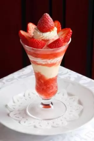 長野県信州畑工房産の苺”恋姫”のストロベリーパフェもこだわりの逸品だ。資生堂パーラー専用のハウスで採れた、夏秋苺を贅沢にあしらった。爽やかな酸味が広がる味わいが特徴となっている。