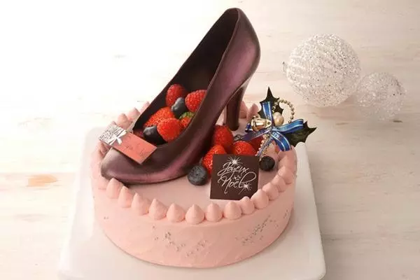 レトロモダンなフランス菓子で名高い「パティスリー レザネフォール」のケーキは、5種類のベリーと北海道産の生クリームのショートケーキをほんのりバラが香るクリームで包んだ。チョコレートのハイヒールを飾ったピンクの見た目もキュート。