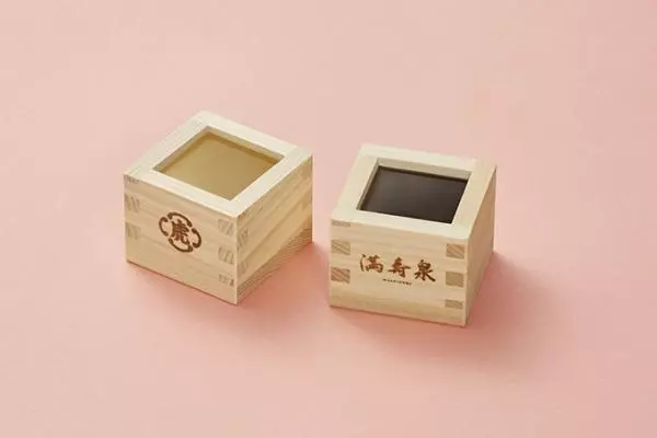 企画展開催に際して、富山の酒蔵「桝田酒造店」の『満寿泉(ますいずみ)』を用いた羊羹が登場。15種類以上ある『満寿泉』の中から、2種類の酒を採用し、酒と餡それぞれの風味を活かした食感が実現している。酒の風味と、羊羹が入れられたヒノキ枡の芳香の調和が、展覧会テーマにふさわしい菓子に仕上がった。