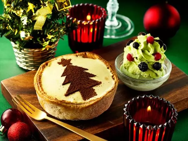 12月19日(月)から25日(日)のクリスマスシーズン中は特別バージョンに。タルトの表面にはココアパウダーでクリスマスツリーを描き、ピスタチオアイスをふわふわのクリームとベリーで華やかに飾り付けし、クリスマスツリーに見立てた。