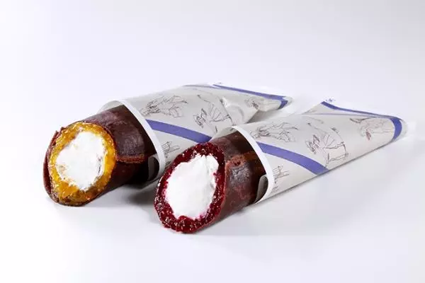 “ジャムの妖精”とも称されるフェルベールとエヴァンがコラボレーションしてつくり上げるのはクレープ「クッサン ダムール」。フェルベール監修のジャムを、エヴァン特製のショコラ風味のクレープが優しく包み込んだスイーツだ。タヒチ産ヴァニラの甘い香りの生クリームとともに、ふわふわのクッションのような食感を味わえる。フレーバーはフルーティな「アマレナ&グリオットチェリー」と「オレンジ&パッションフルーツ」の2種類を用意。