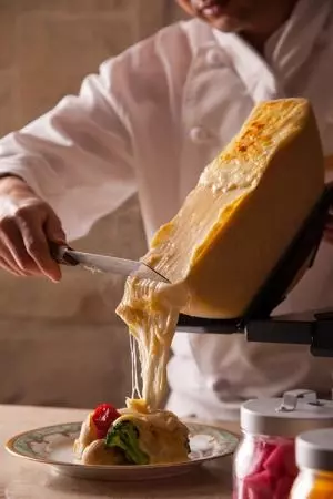 毎年恒例の「桜ブッフェ」には、北海道十勝産の香り豊かなラクレットチーズを使った料理が初登場。ディナーではラクレットチーズをシェフが熱々でサービスし、さらにサーロインステーキまで登場する。
