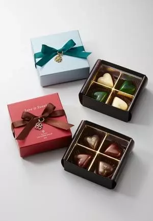“LOVE is SWEET”をテーマに、スイーツとアクセサリーがセットになった商品が提案される。ボックスにかけられたリボンには、幸福のシンボルである“四葉のクローバー”のチャームが煌めき、箱を開けると、4つのハートショコラが愛らしいクローバーの形で入っている。