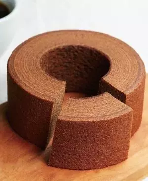 アロマショコラバウムクーヘンは、コロンビア産の厳選されたカカオ豆から作られた、ビターチョコレートをたっぷりと使用。低温で焼き上げることで、カカオアロマを逃がさず、しっとりとした生地に仕上げている。