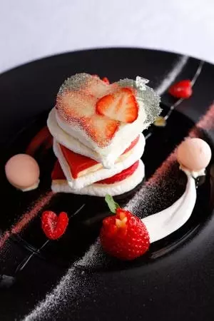 2月1日(水)からスタートする第2弾では、岐阜県産の「濃姫」、福島県産の「ふくはる香」が登場。創業当時からのレシピによる伝統のバニラアイスクリーム、こだわりの苺で仕立てた自家製ソースなどからなるストロベリーパフェを堪能できる。また、今回のフェアでも人気の高い「濃姫」は愛らしいアシェット・デ・セール(皿盛りデザート)でも提供される。