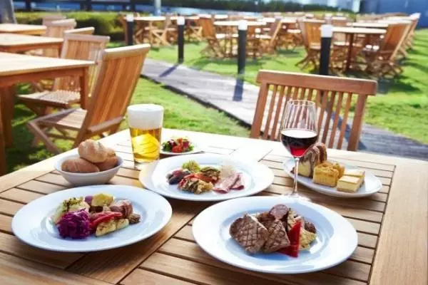 シェフがグリルするお肉、シーフード、野菜など約40種類のメニューをブッフェスタイルで、ビールやワインはフリーフローで提供される。また、キッズフードコーナーでは子供に人気のメニューも用意されるので、家族連れでも楽しめそうだ。