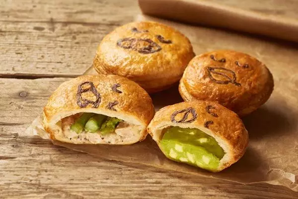 オーストラリアのレシピを日本向けにアレンジした日本オリジナルの惣菜パイ「アスパラとチキンのペッパークリーム」。チキンと玉ねぎの旨みが溶け込んだホワイトクリームにアスパラガスを入れ、アクセントにブラックペッパーを加えた。