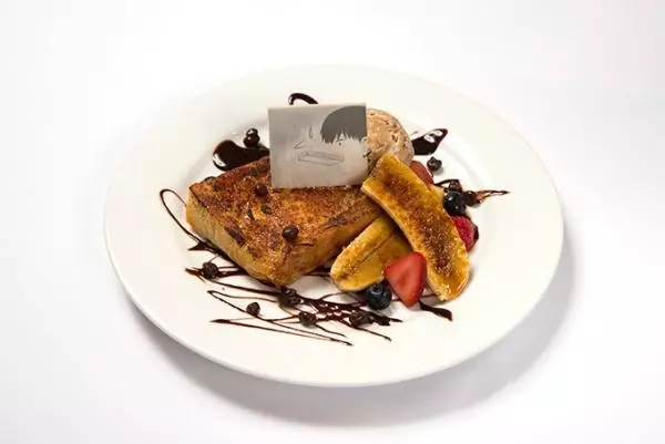 カフェメニューでは、主人公・カネキが通う喫茶店「あんていく」のメニューをはじめ、作中で実際に登場する食べ物をリアルに再現した。ヒナミが「あんていく」で食べていたお肉をイメージしたハンバーグは、まるで血のりのように飛び散った真っ赤なソースや、真っ黒なパスタが、グールたちの不穏なムードを漂わせる。どんな味がするのか全く予想がつかないユニークなメニューを是非、トライしてみては。