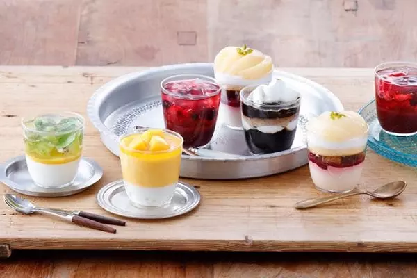 パティスリー キハチの「ベリーヌ」は、プリンやジュレ、ソースといったカラフルな素材を層のように重ねた、華やかな見た目のスイーツ。ひんやりと冷たい食感なので、暖かくなるこれからの季節にぴったりだ。新作は、桃やマンゴーなどジューシーなフルーツを使った全4種類。
