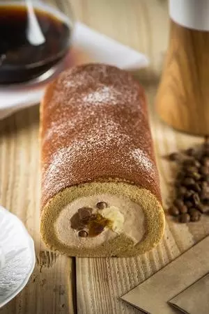 ふんわりと滑らかな生地から、たっぷりのクリーム、そしてガナッシュとゼリーにまで、コーヒーを贅沢に練りこんだ。フルーティで深みのあるコーヒーの香りと、ショコラが甘くとろけるガナッシュや、堂島ロール自慢のコク深いクリームが複雑に混ざり合い、いつまでも濃密な余韻が後を引く。