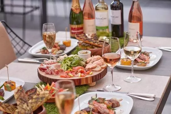 新鮮な野菜を使ったオードブルや前菜盛り合わせ、ハウスメイドのガーリックブレッドのほか、メインディッシュにはビーフやチキンの串焼きを提供。またドリンクは、フランス直輸入のロゼワインが用意され、グラスワイン付きやフリーフロープランを選べる。追加料金で夏にぴったりの自家製アイスクリームコーンも。