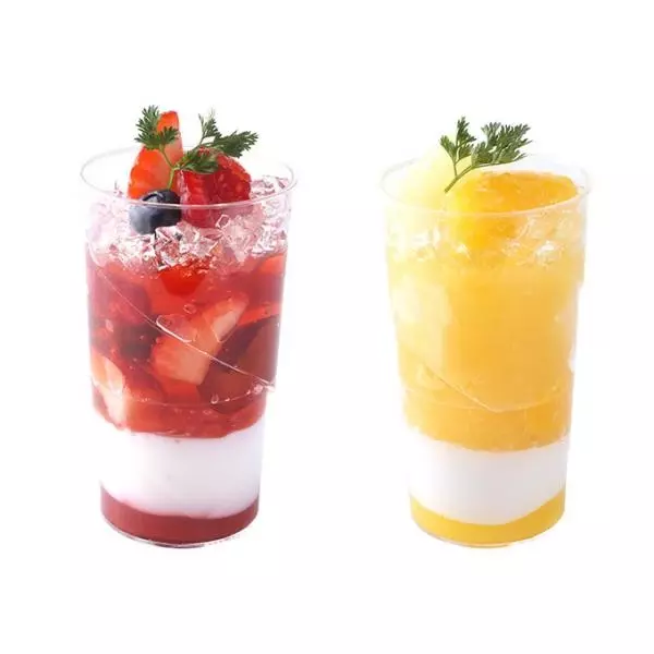 どちらもキラキラと光るゼリーがポイント。涼しげなサマースイーツは、一つひとつの層を個別に食べてもよし。また、スプーンですくって一緒に食べると、ひと味違った味わいが楽しめる。