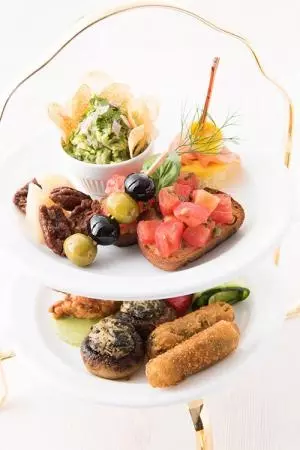 内容:ワカモレチップス、ブルスケッタ、ミニチュアサーモンベネディクト、オリーブ、グラナパダーノ、キャンディーピーカン、NYフライドチキン、スタッフドマッシュルーム、ピクルスフリット、パプリカ&ズッキーニマリネ