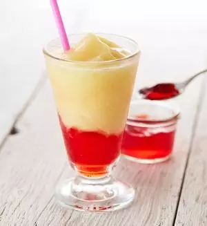 ヨーロッパぶどうの代表的な品種「マスカット・オブ・アレキサンドリア」の果汁とダージリンティーの抜群の相性は、やさしい甘さと心地よい渋みを生み出す。そこに加わるザクロゼリーの甘酸っぱくみずみずしい味わいと、ぷるっとした食感が暑い夏にはたまらない。