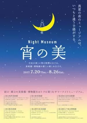 東京都内6つの美術館・博物館にてナイトミュージアム「宵の美」が行われる。2017年7月20日(木)から8月26日(土)までの期間中開館時間が延長されるほか、割引やイベントを実施する。