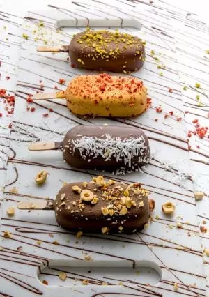 販売されるのはチョコレート、バニラ、アンバー、コーヒーの4フレーバー。北海道の生乳をたっぷりと使用したアイスクリームが豆からこだわりぬいたチョコレート”ペルー”とインターナショナルチョコレートアワードを受賞したサマーバード オーガニックの傑作”アンバー”でコーティングされる。店内で一つ一つ丁寧に作られたアイスクリームは、プレートにアーティスティックにデコレートされて提供される。