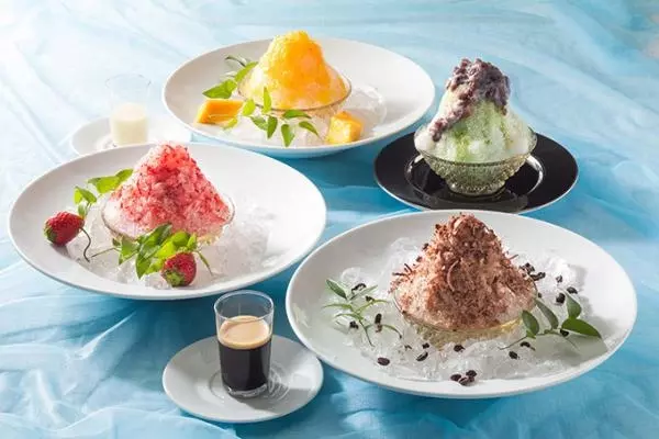 ふわふわ食感とやさしい淡雪のような繊細な口どけのかき氷は、5種類のフレーバーでお目見え。