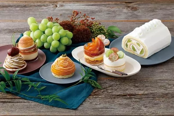 暑さ残る時期におすすめなのが、爽やかなぶどうを使ったスイーツ。シャインマスカットとヨーグルトを加えた爽やかなチーズクリームをしっとりとしたシフォン生地で巻き上げたロールケーキ「季節のロール シャインマスカット」や、シャインマスカットと安芸クイーンの2種のぶどうを使ったグラススイーツ「ぶどうのグラスショート」が展開される。