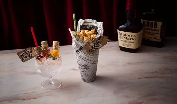 禁酒法時代の密やかなお酒の楽しみ方をテーマに、”一見お酒に見えない”ユニークなドリンクが多数提案される。「トリプルシューター(Triple Shooter)」は、試験管型のボトルの中に、メーカーズマークのバーボンをローズマリー、オレンジ、コーヒーで香りづけした3種類のお酒を詰め込んだもの。キャラメルポップコーンののった「ポップシークレット(Pop Secret)」は、英字新聞に包まれたカップの中に、ノブクリーク&ペプシコーラで仕上げた甘くてほろ苦いバーボンコークを注いでいる。