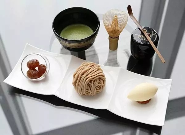 「ヴェルミセル」は、栗のハチミツを使用したアイスとイタリア北部のマローニのコンフィをセットにしたプレート「アシェット マロン」で提供。3種の異なるマロンの風味が堪能できる。また、プレートを抹茶と一緒に楽しめるセット「アシェット マロン アヴェック レ テ ヴェール」も用意した。栗のほっこり豊かな甘みと香り高い抹茶は相性抜群だ。
